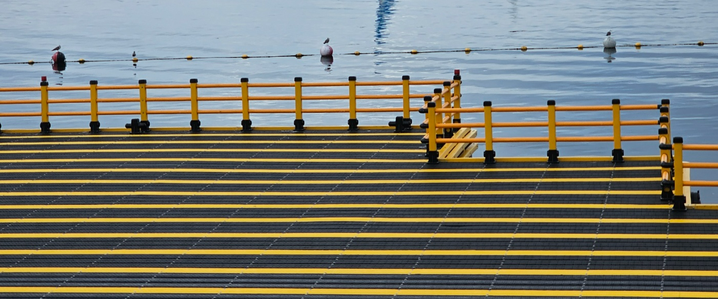 위에 사진을 보면 그물망이 쳐져 있고, 부표 같은 게 떠있는데 신기하게 부표 하나하나마다 갈매기가 쉬고 있다.