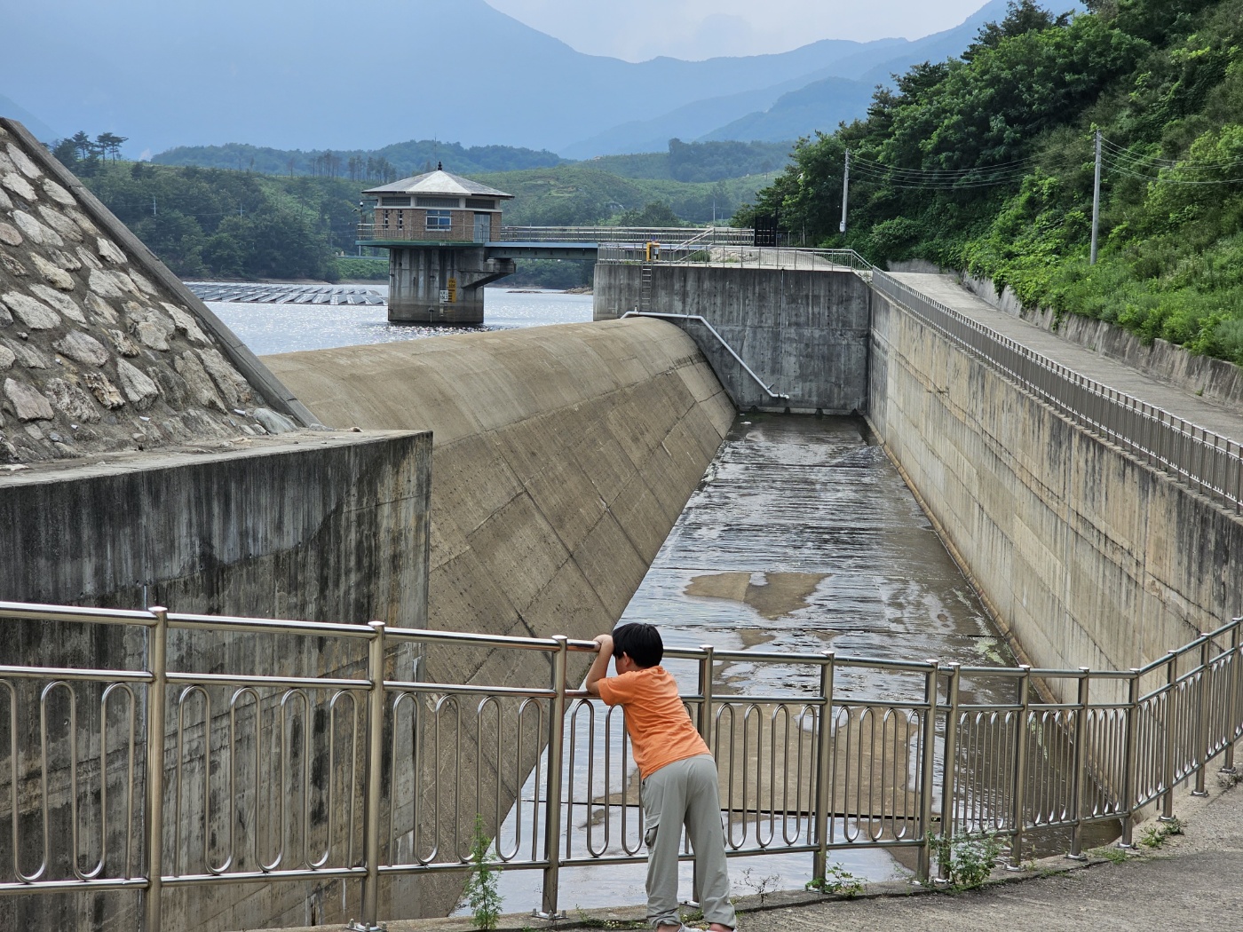 저수지 담수율이 넘어가면 이쪽으로 물이 떨어질 텐데, 아쉽게 고성 쪽은 비가 많이 안 와서 물이 흐르지 않는다..