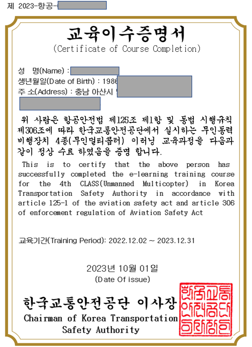 4종 자격은 2kg의 드론까지 날릴 수 있어, 따두면 매우 좋다.