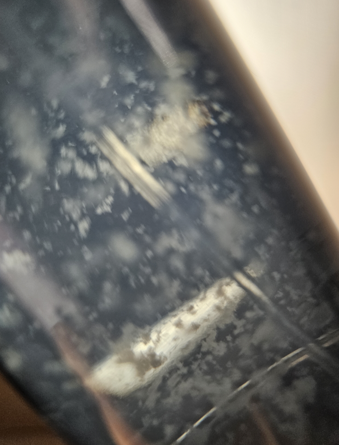 아래 사진은 보틀 내부를 LED 전등에 대고 찍은 사진인데, 내부에 약간 사진이 불순물처럼 보이지만 장미잎 조각 같은 것이다.